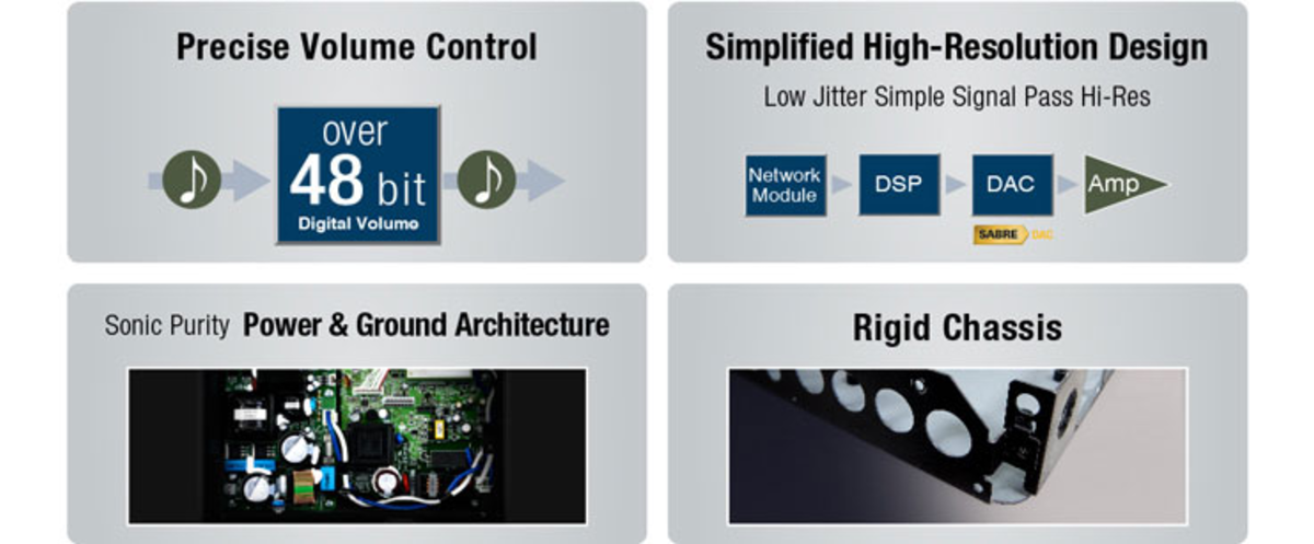 The WXA-50 reaps the benefits of Yamaha’s advanced audio technologies and circuit designs. The preamp circuitry, for example, minimises digital jitter and uses the same high performance ESS DAC that is found in high-end AV receivers. Yamaha’s proprietary power supply ground configuration, called DAC on Pure Ground, ensures that the power supply will never negatively affect sound quality. The 48-bit digital volume control provides much greater precision and quality that conventional digital or analogue controls. In addition, a highly rigid, metal chassis supplies the stability necessary for powerful, clear music reproduction.