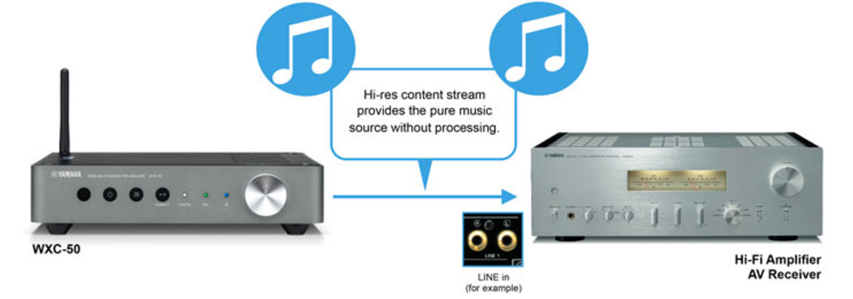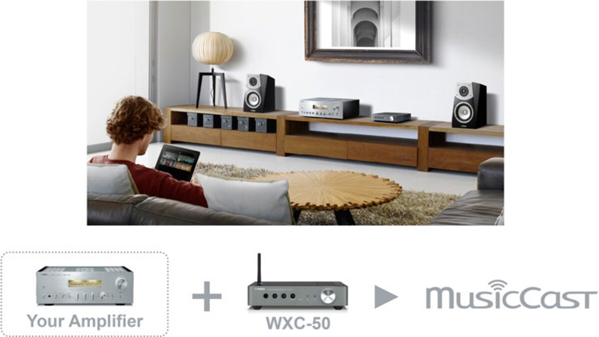 Even if your present Hi-Fi amp or AV receiver is not compatible with a network or MusicCast, simply by adding the WXC-50, you can easily enjoy network audio or MusicCast (multi-room audio).