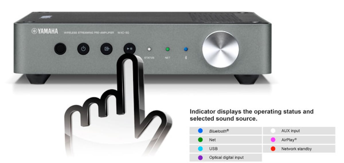 The WXC-50 reaps the benefits of Yamaha’s advanced audio technologies and circuit designs. The preamp circuitry, for example, minimises digital jitter and uses the same high performance ESS DAC that is found in high-end AV receivers. Yamaha’s proprietary power supply ground configuration, called DAC on Pure Ground, ensures that the power supply will never negatively affect sound quality. The 48-bit digital volume control provides much greater precision and quality that conventional digital or analogue controls. In addition, a highly rigid, metal chassis supplies the stability necessary for powerful, clear music reproduction.