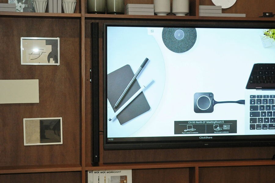 JN: In addition to this boardroom, we’ve also installed the ADECIA system in two visitor meeting rooms (Meeting Room 3 and Meeting Room 5). The boardroom is a place where board members gather to discuss important company matters, and our meeting rooms for visitors are where we meet VIPs of crucial importance to our business, such as our clients and business partners, so they require appropriate equipment enabling all attendees to concentrate on the conversation in comfort. In the case of meeting rooms used only for communication among employees, it's not too much of a concern if online conferencing microphones and cables are placed randomly onto tables, but this approach is simply not suitable for really special places of communication. Our main reason for introducing the ADECIA, which features panel-shaped microphones installed on the ceiling, was that it keeps the tabletop as clear and clean as possible.