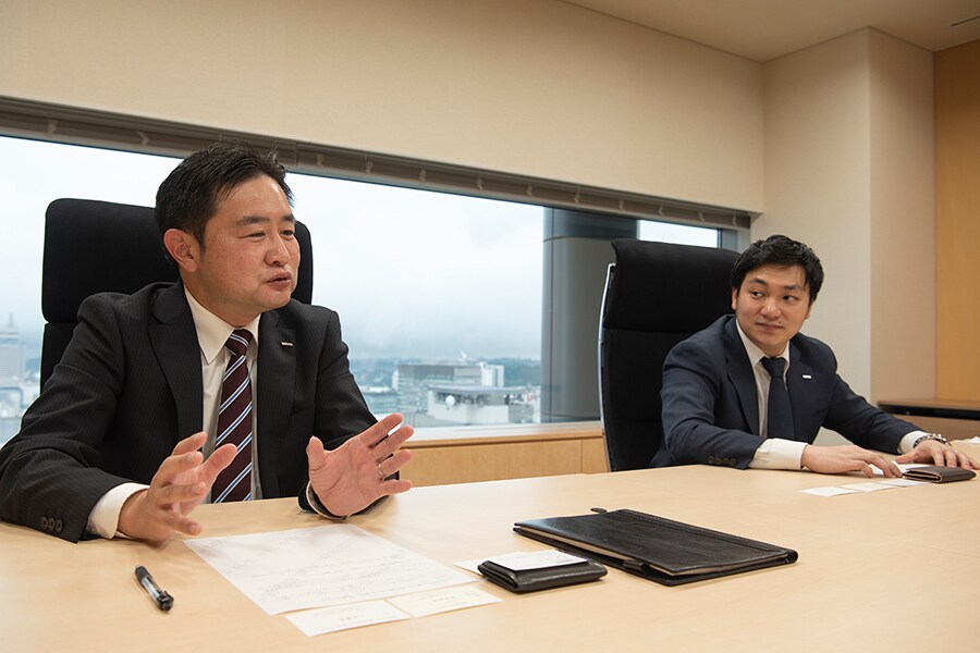 NTT Docomo Tohoku Inc.; Mr. Hidetoshi Ueno, Manager, Planning and General Affairs Department Manager (Left); and Mr. Masaru Hirayama, Planning and General Affairs Department (Right) (Posts assigned at the time of the interview)