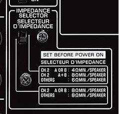 - CH.2 A/B: 4 ohms or more (8 ohms or more when using CH.2 A and CH.2 B at the same time)
