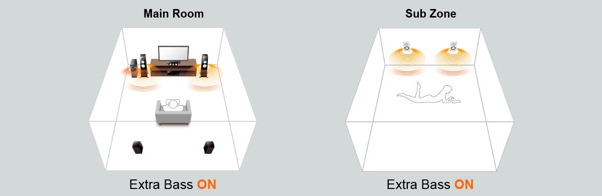 - Zone Extra Bass for more powerful bass sound in another room (Zone 2 and 3)