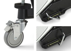 Large main casters are supplemented by a third caster below the pedal, allowing the instruments to glide smoothly and easily.