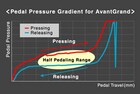 Light to the touch at first, with subtle firmness partway through its travel, and lightening again as the player pushes further; the pedals of the grand piano have subtly different stages that can be felt when the pedal is depressed. Skilled players take advantage of these pedal movements by using extremely delicate pedaling that allows them to achieve finely nuanced expression in their play. In developing this instrument, we set out to reproduce the sensations of a grand piano's pedals as faithfully as possible. The resulting pedal allows for music as you believe it should sound, equally responsive for more impressionistic pieces that require a lot of half-pedaling.
