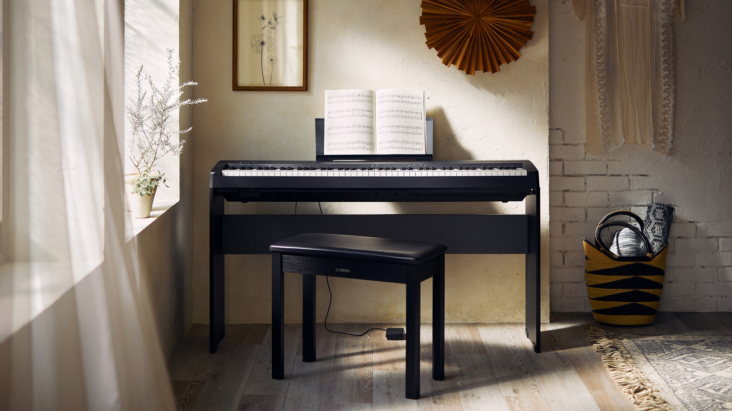 Slim and stylish form With a depth of less than 30 cm, the instrument requires little space, and at only 11.5 kg—with its speaker attached—it can be easily moved anywhere in your home or even used for performance outside.