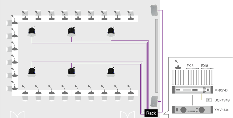EXi8 input expanders convert analog microphone/line audio to digital and transmits the signal using Yamaha's YDIF format. The EXi8's preamps can be controlled remotely from MTX/MRX series processor via Ethernet cable.