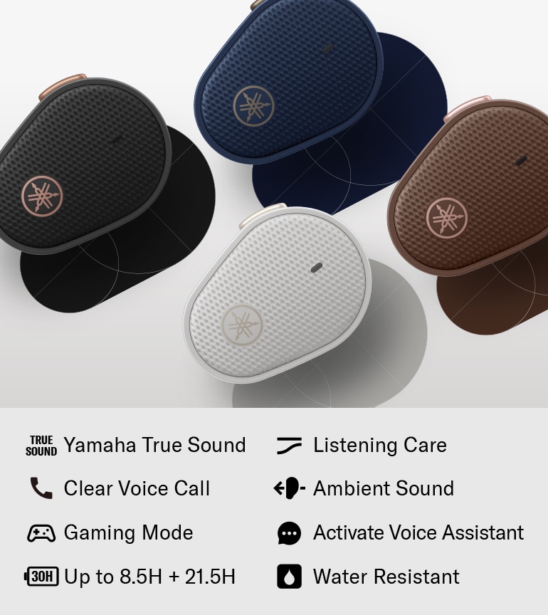 High-performance sound and Yamaha original tech converge in the comfortable, all-new TW-E5B true wireless earbuds.