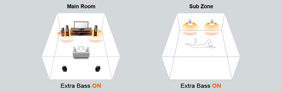 • Zone Extra Bass for more powerful bass sound in another room (Zone 2)