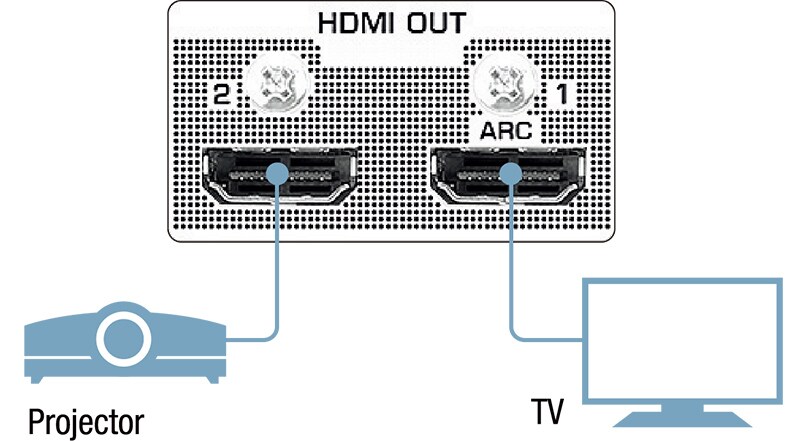 - HDMI® (5 in / 2 out) with Dolby Vision™ and Hybrid Log-Gamma