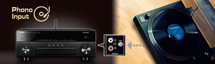 This AV receiver provides Phono input terminals. Connect a turntable and you can enjoy music from your vinyl collection.
