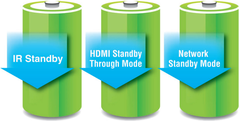 Yamaha makes its receivers eco-friendly with a low standby power consumption of 0.1W in IR Standby mode (1W in HDMI Standby Through mode, 2W in Network Standby mode).