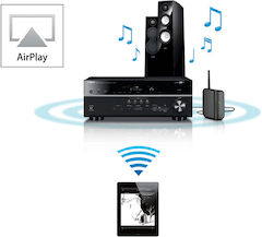 This AV receiver supports AirPlay, which means they can accept wireless music streaming from iPod touch, iPhone or iPad, as well as from iTunes on Macs or PCs. This makes it easy to enjoy music from your mobile devices or computer on your home theatre system. You can use view metadata such as song title, artist name as well as album art* via AV receiver's on-screen display.