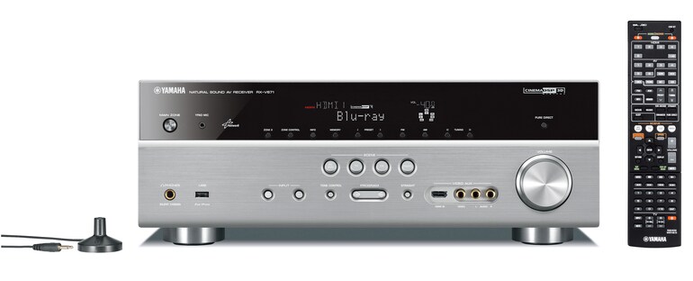 Network AV Receiver with 6 in/1 out HDMI (3D and ARC compatibility), iPhone app compatibility, front panel HDMI and USB connections, HD Audio decoding with CINEMA DSP 3D, and 1080p upscaling.