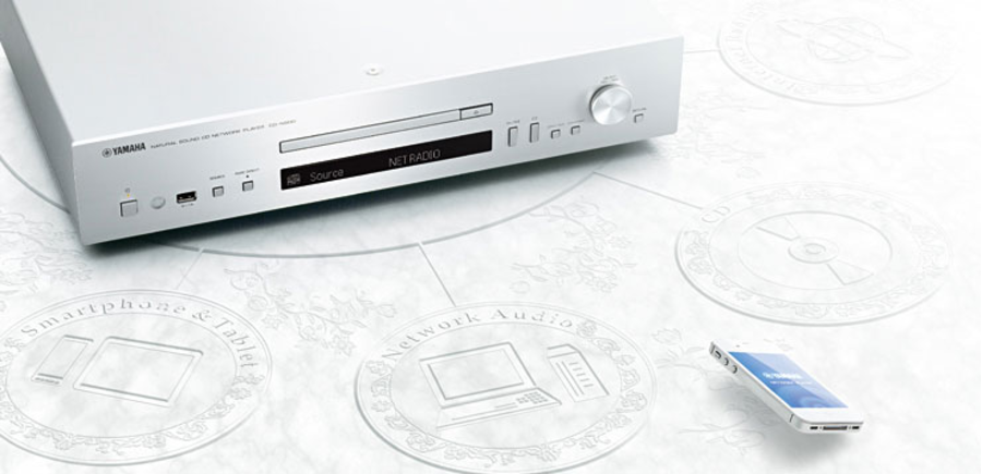 The CD-N500 is a CD player and network audio player in a single unit. In addition to your own CDs, it's simple to play audio sources downloaded from the Internet and stored on a PC or NAS system. And the special NP Controller application allows you to enjoy your favorite tunes on a smartphone or tablet device via wireless connection.