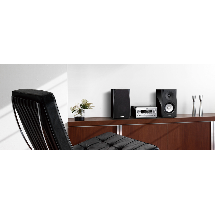 Matched to the main unit, the speakers have a luxury design with rounded corners. They show our commitment to a musical instrument-like appearance, with a deep luster, beautiful piano finish and a high texture wood-grain finish.