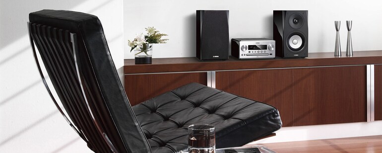 Matched to the main unit, the speakers have a luxury design with rounded corners. They show our commitment to a musical instrument-like appearance, with a deep luster, beautiful piano finish and a high texture wood-grain finish.