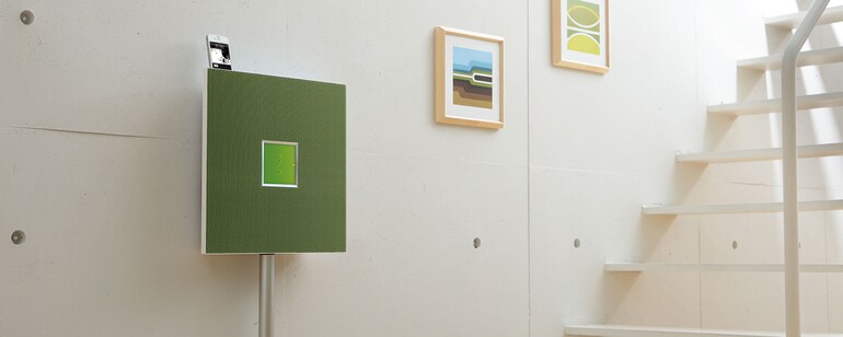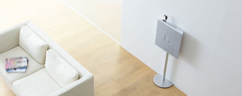 With a 9cm body and a half-moon shaped stand, you can position Restio right up against a wall. What’s more, the standalone style doesn’t require a shelf, so there are no restrictions on where you can put it. You can even remove the stand and hang it on a wall (requires an optional bracket AT-800). It’s the perfect way to match your music source to any room’s decor.