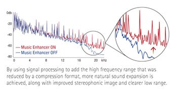 The Compressed Music Enhancer restores frequency response lost during digital compression, so your music sounds the way it should. It is optimised for Bluetooth® audio transmission for vivid, lively sound quality during wireless playback. The function engages automatically when a compressed source is played.