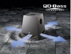 QD-Bass (Quatre Dispersion Bass) technology uses down-firing drivers with square, pyramid-shaped reflective plates to radiate the sound efficiently in four horizontal directions.