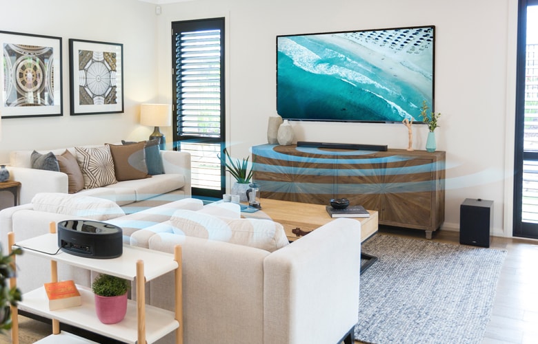 - Connect to a TV for upgraded sound