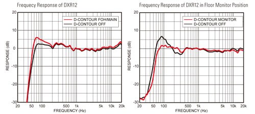 D-CONTOUR is an intelligent multi-band compressor that gives you powerful and consistent sound throughout all output levels. By constantly monitoring the output of multiple frequency bands and calculating the optimum EQ adjustments for each, even the maximum sound output maintains outstanding clarity and musicality.With the DXR Series, D-CONTOUR provides a more detailed tuning of your sound with two different settings: FOH/ MAIN mode or MONITOR mode. FOH/MAIN mode boosts low-frequency to compensate for low-end that is typically missing when speakers are used in suspended applications or mounted on a speaker stand. MONITOR mode is completely optimized for floor monitor application by intelligently taming down the low-frequency that adds up due to floor reflection, smoothing out a wide range of frequency bands to give you stunning clarity for monitoring your sound. Both of these presets were perfected by performing countless listening tests with skilled sound engineers, giving you a multi-band compressor that performs dynamically, delivering consistent sound with low distortion at any output level.