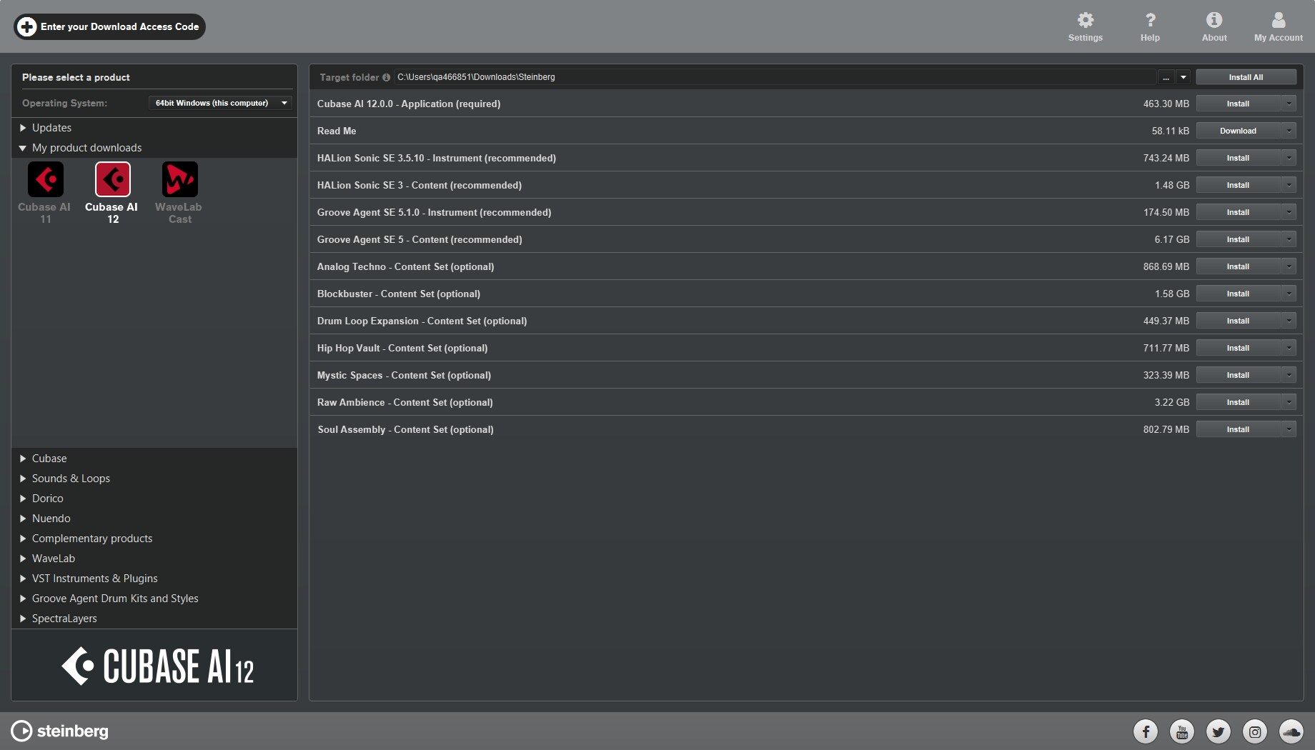 Downloading the "Cubase AI" and "WaveLab Cast" DAW software