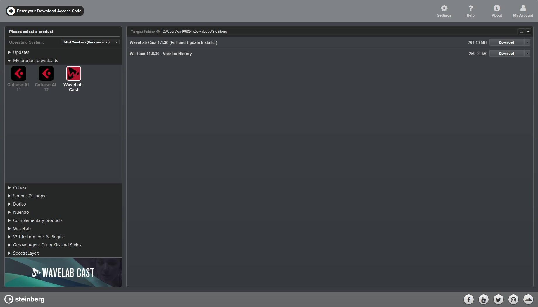 To download and activate Cubase AI and WaveLab Cast, use Steinberg Download Assistant.