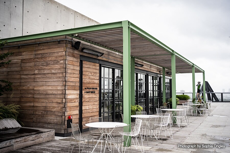 Founded by Prue Freeman and Tom Onions in 2012, Daisy | Green has developed an attractive range of premises throughout London, each individually designed to make it a unique experience for customers. Completed in 2019, the Brunel Building’s 16 floors and 22,610㎡ of office space gave Prue and Tom the opportunity to establish a larger, more permanent restaurant close to its existing Darcie & May | Green restaurant, a pair of converted narrowboats which float on the adjacent Grand Union Canal.