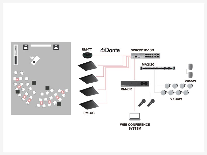 The following are examples of how different rooms can be equipped with Yamaha „Professional Audio for Conferencing“ products. From complete all-in-one ADECIA solutions to custom solutions tailored to a specific room and application, Yamaha elevates professional communication to the next level.