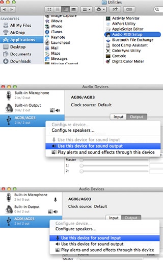 3. Control-click [AG06/AG03] in the list, and select [Use this device for sound output].