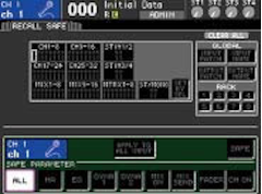 The LS9 scene memory allows instant store and recall of all console parameters, including head amp gain. The Recall Safe function can be used to exclude specified channels from scene recall operations, making it possible to leave sound effect or MC channels unaffected by scene recall, for example. There's also the Recall Focus function that makes it possible to specify which function group will be affected by scene recall: head amp, virtual rack, input patch, output patch, input channel, or output channel.