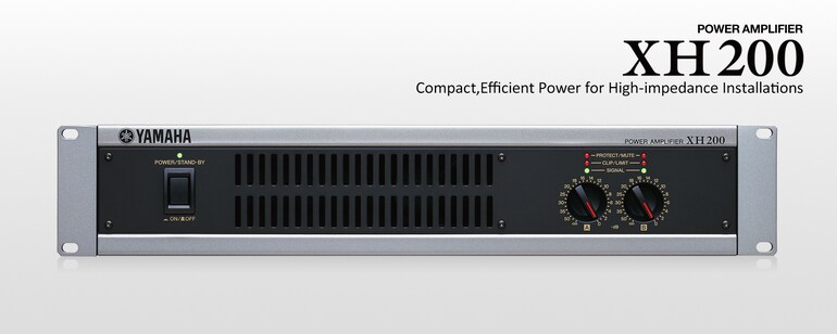 The XH200 is a two-channel high-output power amp that can be switched between 70V and 100V line operation (200W x 2 channels into 24ohms-70V / 48ohms-100V). This high-impedance power amp is designed for installations in which multiple speakers are driven in parallel. A high-efficiency switching power supply means that the XH200 is significantly smaller and lighter than comparable amplifiers: it fits comfortably in a 2U rack space and weighs only 10 kg.