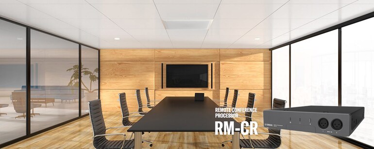Uses the Dante audio network standard for audio transmission between devices. Audio/control signals can be transmitted via a single network cable. The RM-CR Remote Conference Processor performs voice line settings and detailed adjustments automatically, which easily resolves several difficult problems associated with troublesome wiring, establishing network environments, and optimizing acoustics for each room environment.