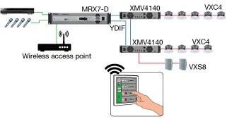 Since MTX/MRX devices are controlled via Wi-Fi, the tablet device can be mounted on a wall or other fixed surface, or used handheld for maximum remote control freedom and convenience. It is also possible to control ON/OFF switching of XMV series power amplifiers connected to the MTX/MRX series unit via YDIF or Dante, for example, providing basic control of the entire system from input to output.