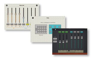 Microphone and CD player volume faders, microphone ON/OFF switches, photos, and other widgets can be freely arranged on the design page.ProVisionaire Touch provides an easy, intuitive way to create original touch controllers that are ideally configured for the target installation. Multiple design pages are available so that different control panels can be provided for different audio zones and/or users, with presets and parameter settings optimized for each.
