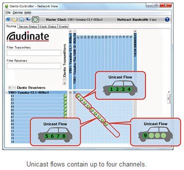 In most cases, the audio data that travels through a cable will not exceed 512 channels (at 48 kHz), so in normal circumstances, unicast is the best choice. That being the case, when is multicast absolutely necessary? It is when a transmitter runs out of flows.