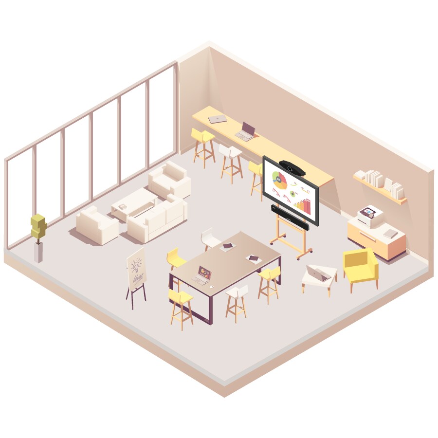 If you want to divide a conference room into multiple separate rooms, Yamaha have technologies to help you achieve your goals. By using suitable processing devices, the room can be freely divided or integrated without complicated operation. This allows you to adapt the system as the layout changes. We also collaborate with many other manufacturers to allow you to choose the audio and video combination for your space.
