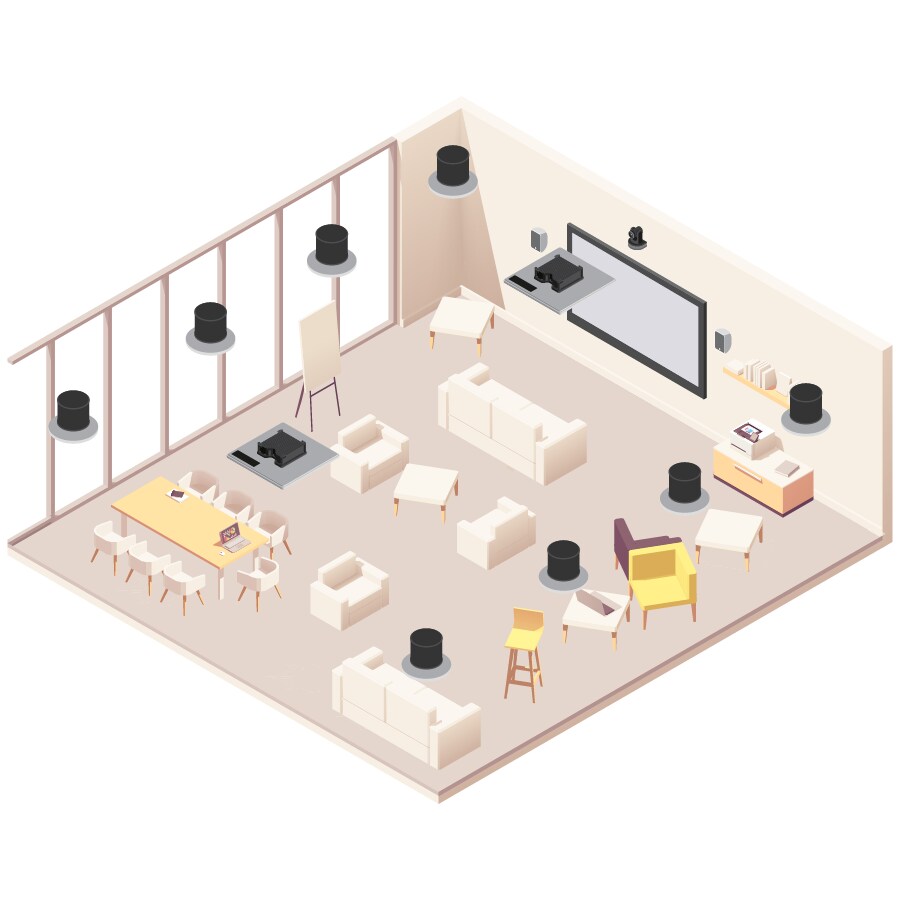 The ADECIA Ceiling solution is the best choice for medium-sized meeting rooms of up to 55m² - following your presenter as they move in the space, and ensuring that everyone is heard as intended. The solution ensures that your desks can be kept clear of technology, allowing less distractions, and more flexibility.