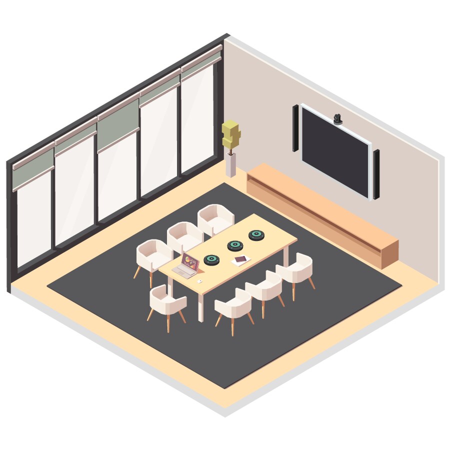 In smaller meeting rooms (up to 30m²) with fixed setups that rarely ever change, or in rooms with ceilings too low for a ceiling microphone, the ADECIA Tabletop solution is the best choice.