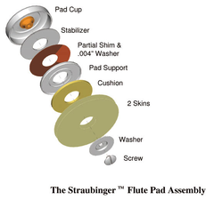 Straubinger pads, which are made using a stable plastic base and durable synthetic leather, have been widely adopted as essential components of a high quality Handmade flute. Compared to traditional felt and paper pads that require frequent adjustments, Straubinger pads are more tolerant of environmental change and remain in top playing condition for a longer period of time. A Yamaha Handmade flute with Straubinger pads enables the player to achieve a clear response with a more mature, nuanced sound.