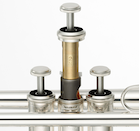 Highly durable monel alloy pistons as well as piston buttons and bottom caps help lengthen the life of the instrument while also maximizing sound quality. Picture shows the YTR-4435GSII.