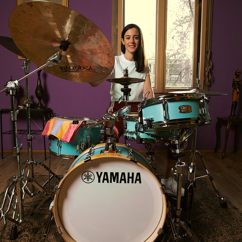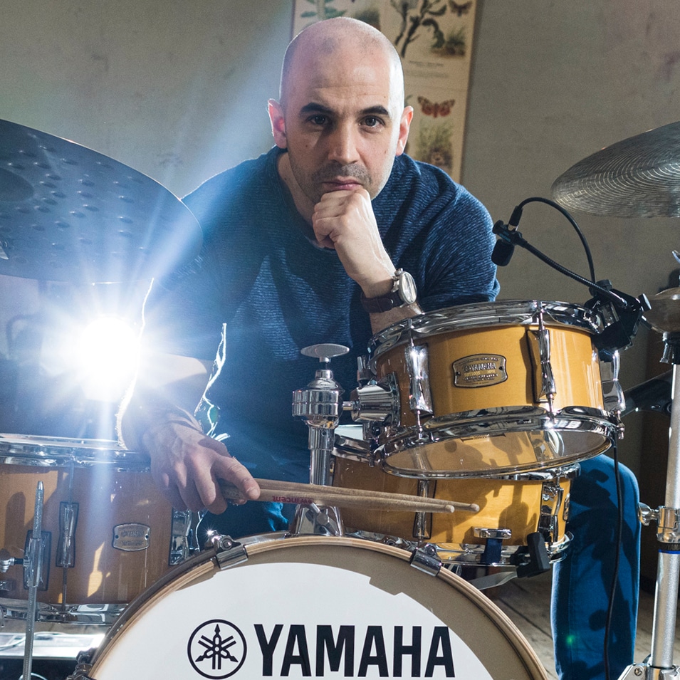 Erik opts for a 22"x18" kick. “I like its punch. I also have a 14"x 6" maple snare, a 12" tom and a 16" floor tom. I wouldn’t know what to do with more than two toms!”