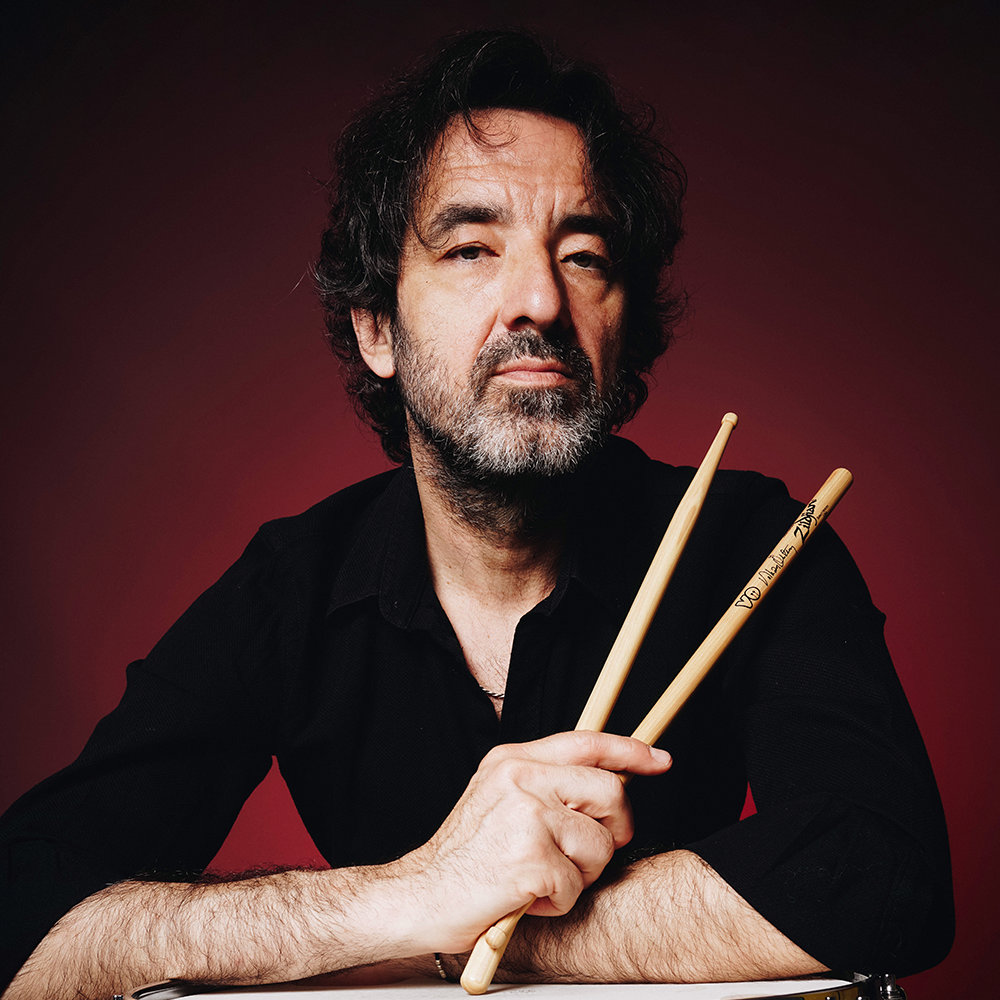 Sandin plays a four-piece Yamaha Absolute Hybrid Maple kit. “I’d never owned a new drum kit ‘til we made our first chunk of money in 1992,” he says. “I went out and bought a Yamaha Absolute kit, and to this day it’s my favourite drum set. I love the warmth of the drums, and the way tones feel like actual notes when the drums are perfectly tuned. They sing to me.”