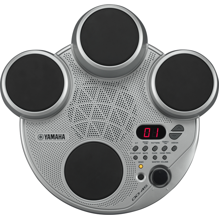 The DD-45 makes portable digital drums available to more aspiring drummers.Four touch-sensitive pads plus a foot pedal, 99 world percussion sounds and a large selection of accompaniments make playing along with other instruments fun and easy. An AUX input lets drummers plug in an MP3 player or an iPod(R) and play along with their favorite music.