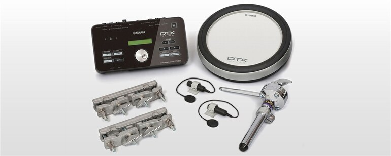 The DTXHP580 hybrid pack includes the DTX502 trigger module with 8-inch DTX-PAD (3-zones) and two acoustic drum triggers.