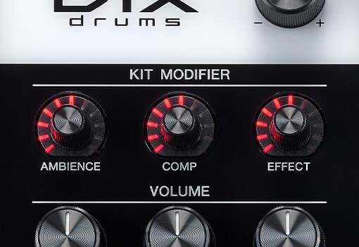 • The AMBIENCE, COMP, and EFFECT KIT MODIFIER knobs allow drummers to create their own unique sounds