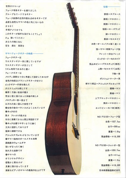 1. 1966FG180: Yamaha's first made-in-Japan folk guitar