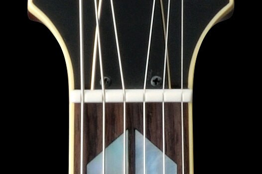 Both the SG1820 and 1802 feature traditional SG inlays, perfectly proportioned to the new, smaller headstock. (left)