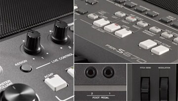 The PSR-S670 features two assignable live controllers, a modulation wheel and two assignable footswitch inputs, ensuring that you have total control over voices, styles, effects and other functions during live performance.